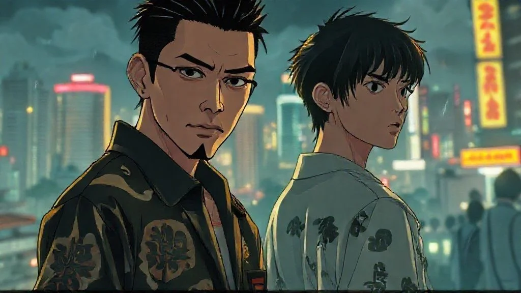 Os protagonistas são dois gêmeos: um mais agressivo, o outro mais inocente. A relação entre eles e a presença de gangues, similares à yakuza, criam conflitos fortes. A cidade funciona quase como um terceiro personagem, influenciando decisões e emoções.